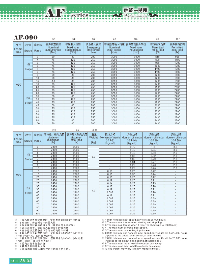 减速比 7 规格 AF090-3-K3-19,AF090-4-K3-19,AF090-5-K3-19,AF090-3-K7-19,AF090-10-K3-19